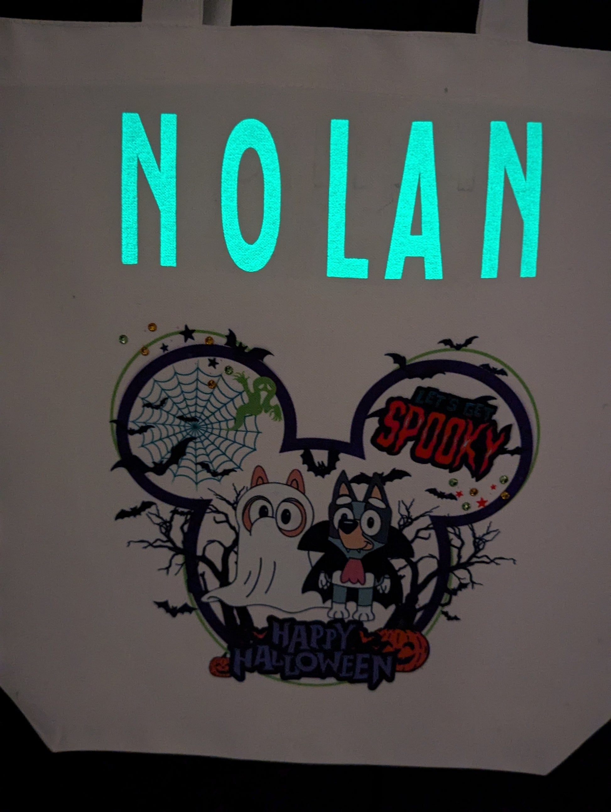 Make Halloween extra magical with our Bluey Personalized "Peek-a-Boo" Trick or Treat Bag! Featuring your child’s name that lights up when it’s time for candy hunting, this bag isn’t just fun—it’s functional too.