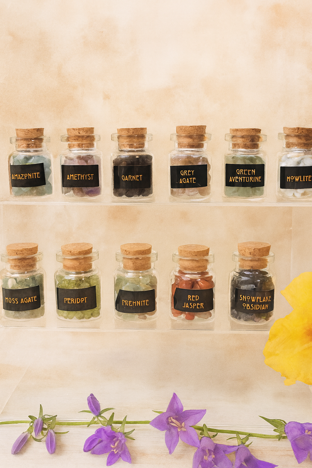 Carry the grounding energy of Virgo wherever you go with this enchanting Crystal Wish Jar Keychain. Each keychain features a miniature glass jar filled with genuine crystals, carefully chosen and moonlit charged to radiate positive energy.